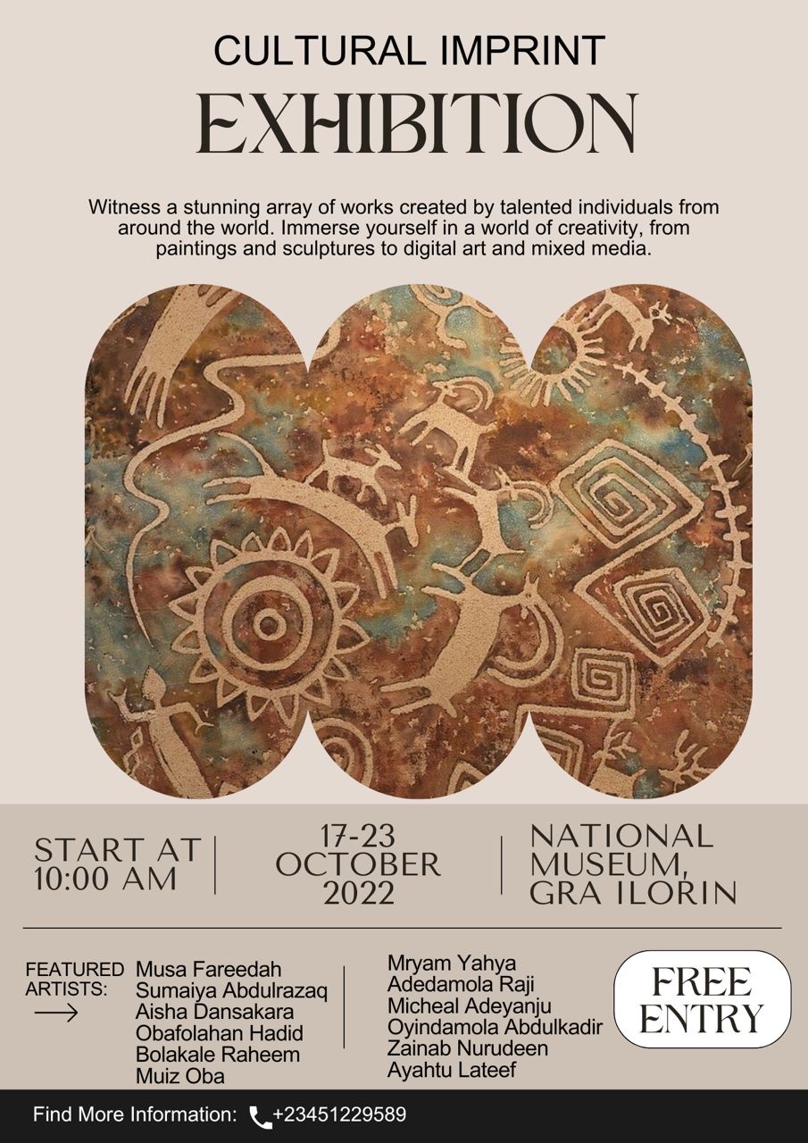 A group of 12 emerging Nigerian artists will showcase their works at the “Cultural Imprint Exhibition,” a week-long art event scheduled to hold from October 17 to 23, 2022, at the National Museum, GRA, Ilorin.
